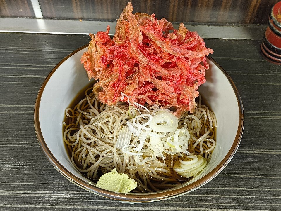 冷し紅ショウガ天そば