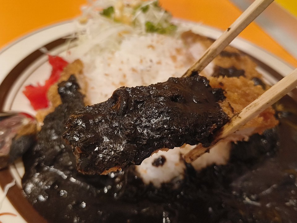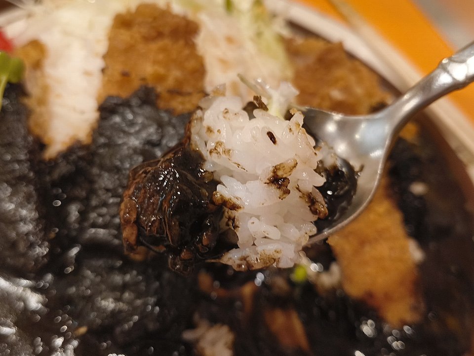 そして「黒カレー」を「ご飯」と「カツ」に絡ませて食べてみると、いや、うまさ倍増だ(笑)。