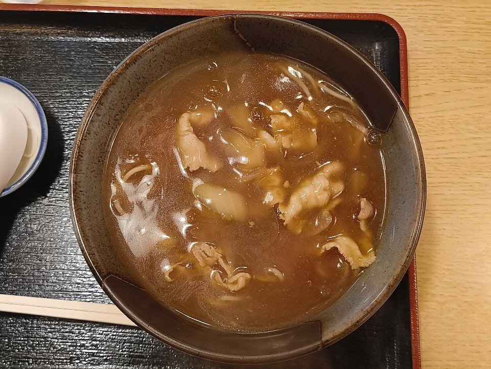 ちょっと淋しいなと、後悔したが、「豚バラ肉」が沢山入った「カレーそば」から「豚バラ肉」を食べてみる。