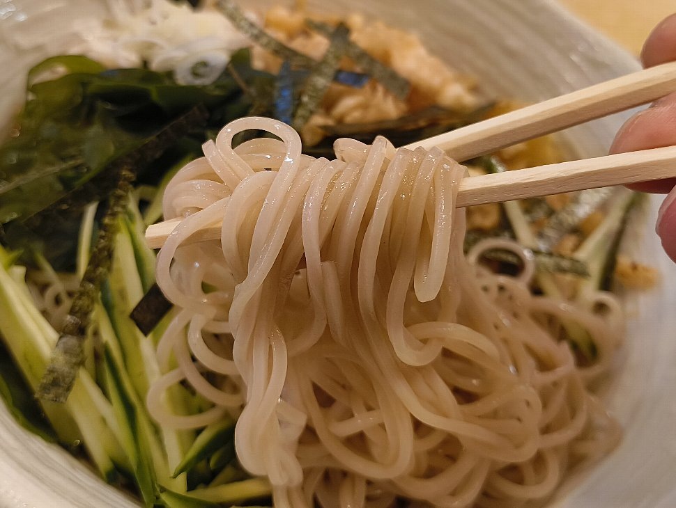大好きな胡瓜と一緒に蕎麦を手繰る