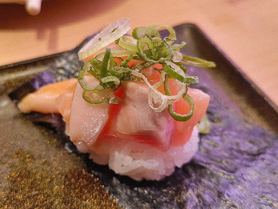 そして最後の「ユッケ風包み」は、刻んだ「サーモン」の脂身である。