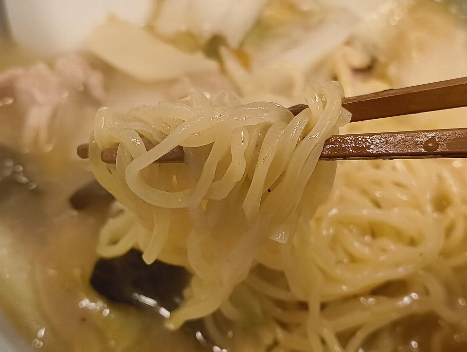 その細い麺を手繰り、さらには「白菜」や「豚肉」、「キクラゲ」を食べてみると、マイルドなのだよ。