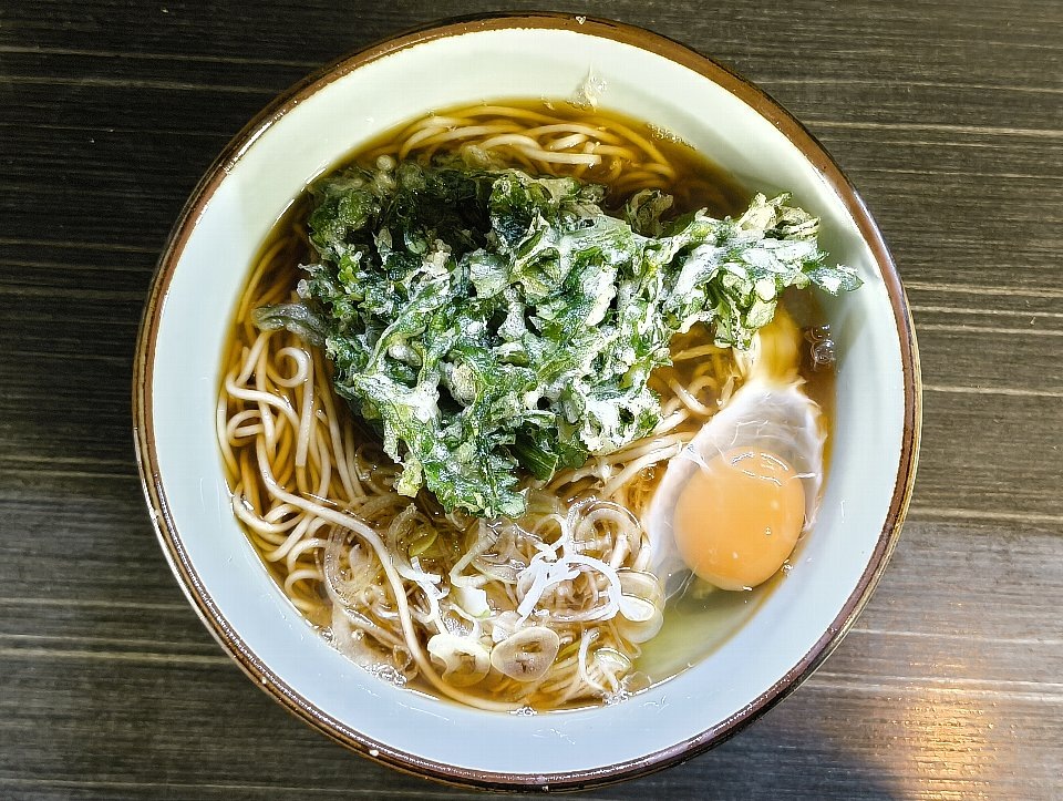つまり「春菊天そば」+「生たまご」はまあまあの出来なのであって、決して最上の姿やどうしようもない形ではないのである。