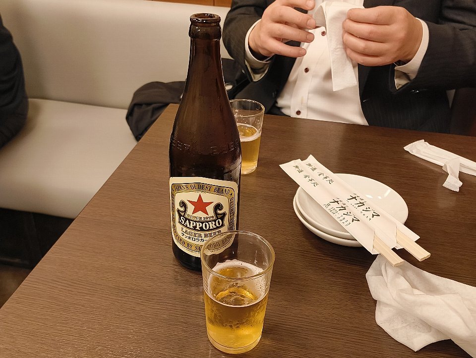 まずは「赤星」で一杯である。