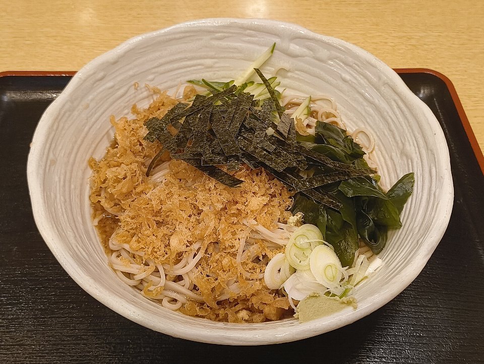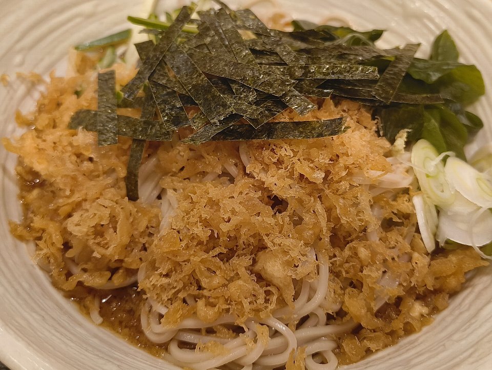 まず見ると「蕎麦」の半分に「天かす」を掛けてある。