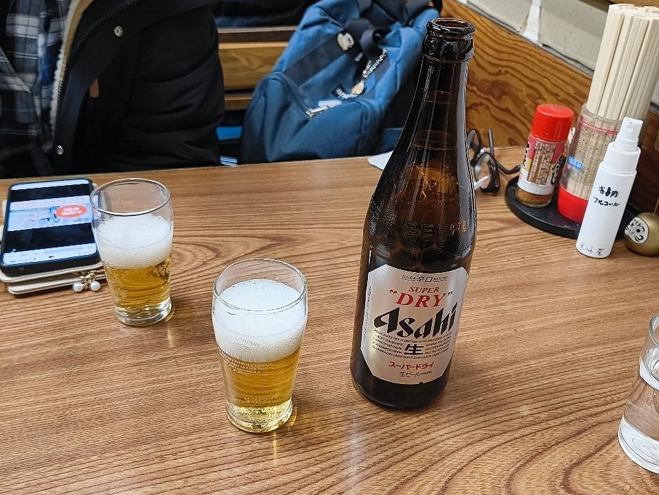 「ビール」と「おしんこ盛り合わせ」、それに「カツカレー」(ご飯半分)と「ライスカレー」である。
