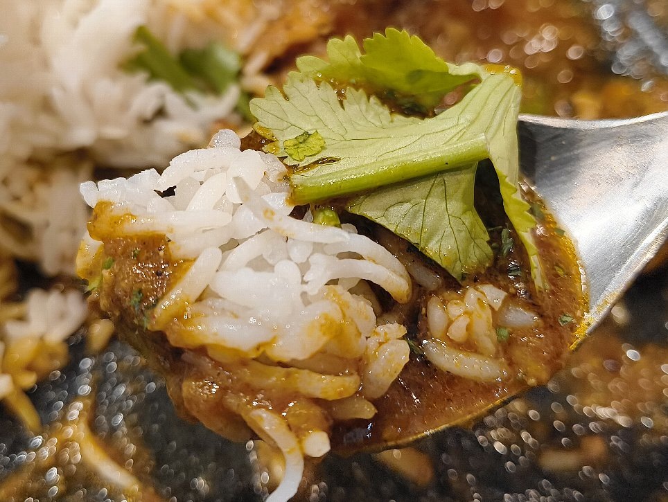 「バスマティライス」を「カレー」に合わせるのは全く正しくて、パラパラ故の食感に粘り気も無く独特の香りもつ。
