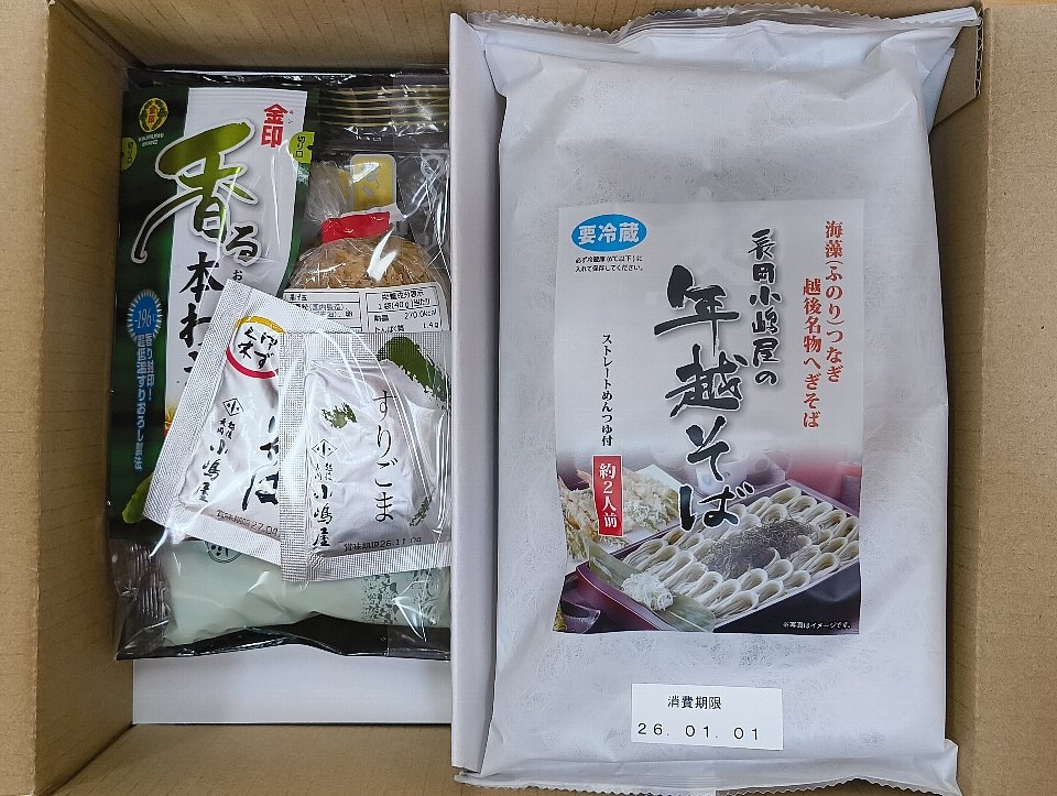 「うどん☆人二合さん」から「越後長岡小嶋屋」の「年越しそば」をいただいていたのだが、これを元日のお昼に食べる事にしたのだ。