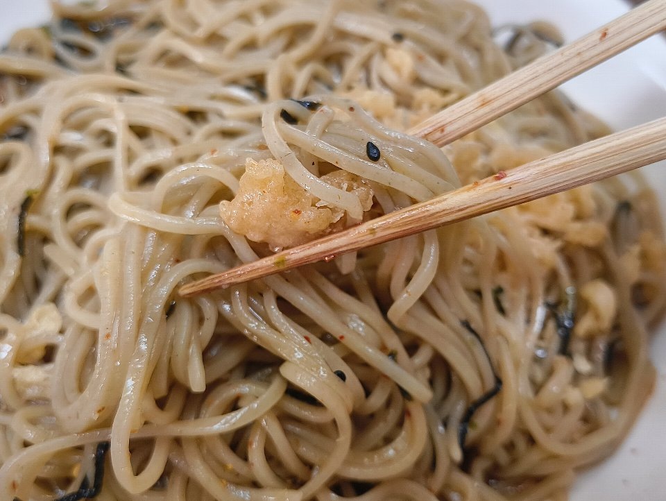 そして「天かす」を味変に使ってみると、ちょっと甘くなるあぶらの凄さで、一層うまくなるのだよ(笑)。