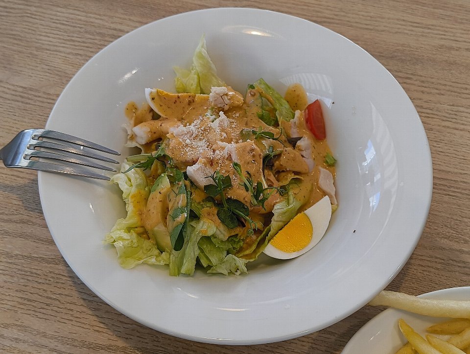 そして「COBBサラダ」が出て来たので「サラダ」から食べてみる。つもの通りの味で安心なのだ。