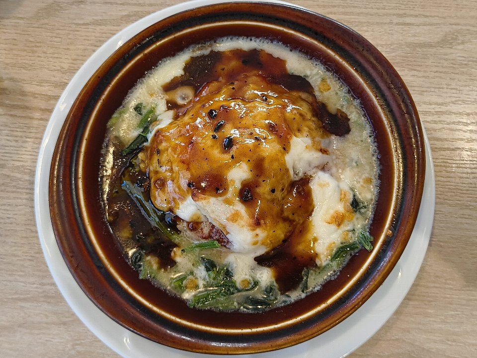 「グラタン風ハンバーグ~トリュフソース」が到着するが、これはなかなか凝っている。