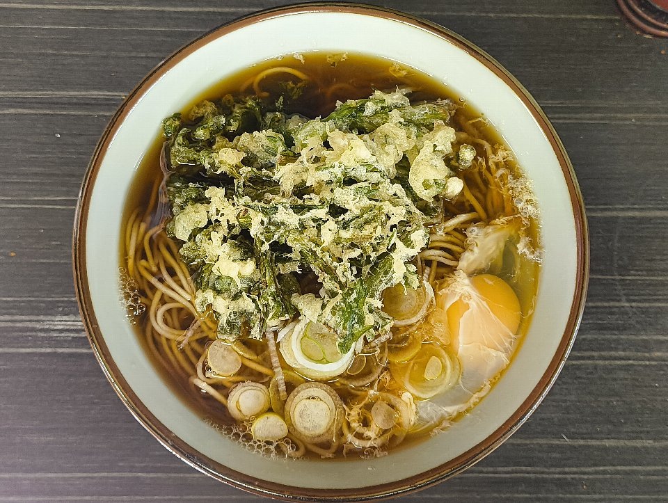 「春菊天そば」+「生たまご」は相変わらずの出来が良さだった。