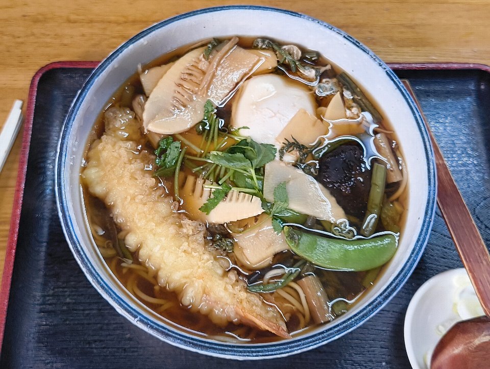 大盛の量じゃないかと思いながらいつも手繰るわけで、それに今日は「天ぷら」がある。
