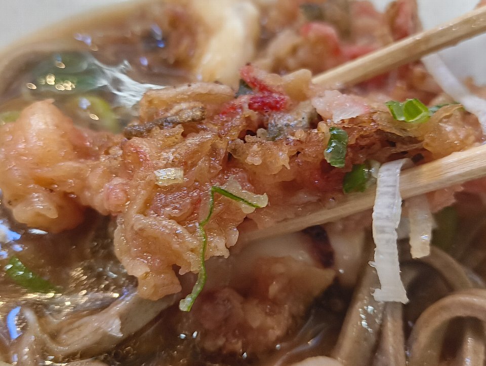 つまりこの「かき揚げ」は「ゲソ」と「紅しょうが」の入った平らな「お好み焼き」なのだ。