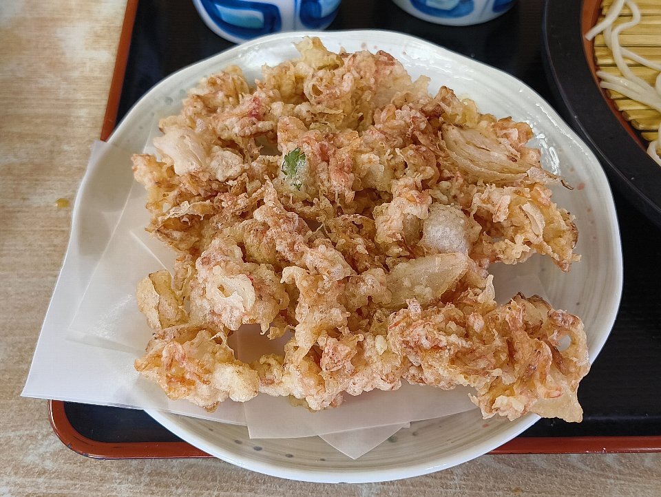 あたしは「得盛」+「玉ねぎ天」+「桜えび天」を、家人は「もり」+「蓮根天」+「桜えび天」をもらったのだ。