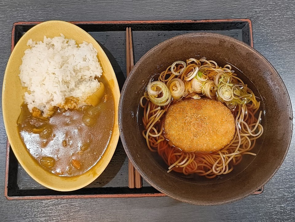 「かけそば」と「カレー」(半分)が並んでいる脇に「コロッケ」があるだけなのだが、