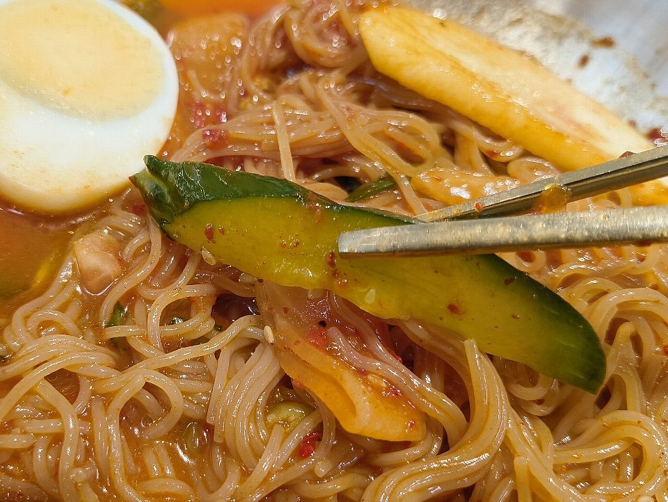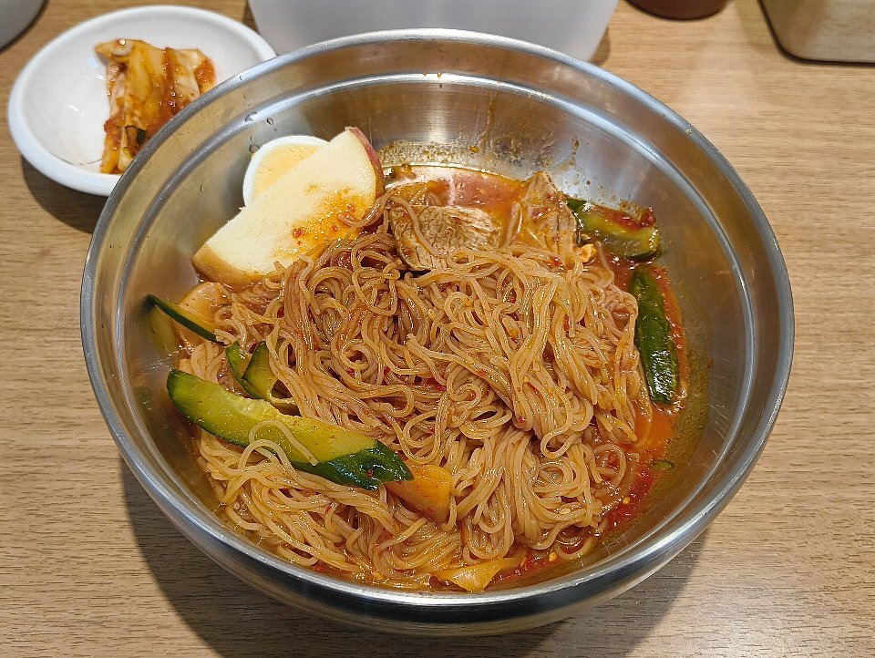 だが、この日は同じ系列の「ビビン冷麺」を頼んでみた。水冷麺は流石に、もう少し暑くならないと手が伸びないのだよ。
