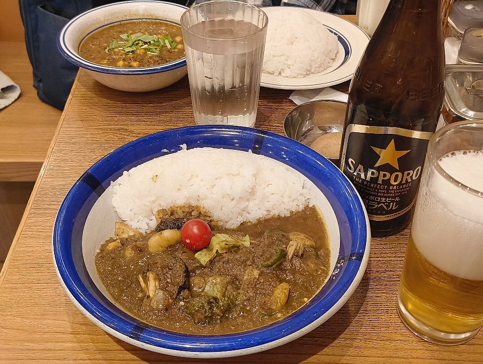 並んでいる間に注文を済ませていたおかげで、ビールを傾けていると、思ったよりも早くカリーが登場してくる。