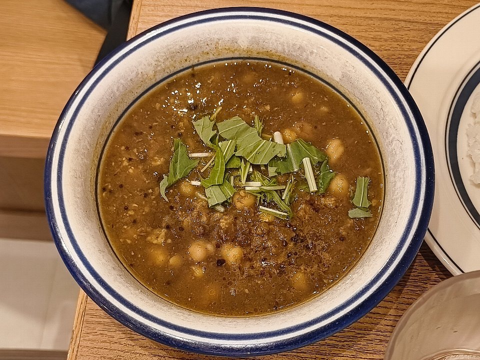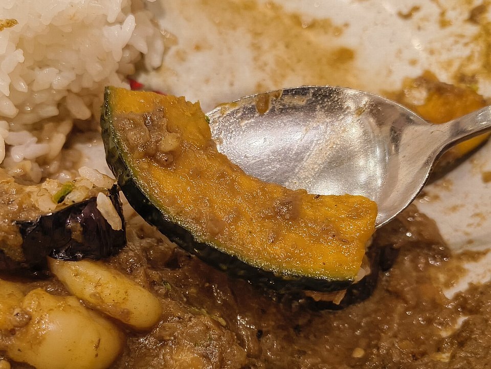 辛さは3倍(中辛)をお願いしたが、後からじわじわと辛さがくるタイプ。辛いのはあまり得意ではないが、3倍がちょうど良い塩梅(あんばい)だった。