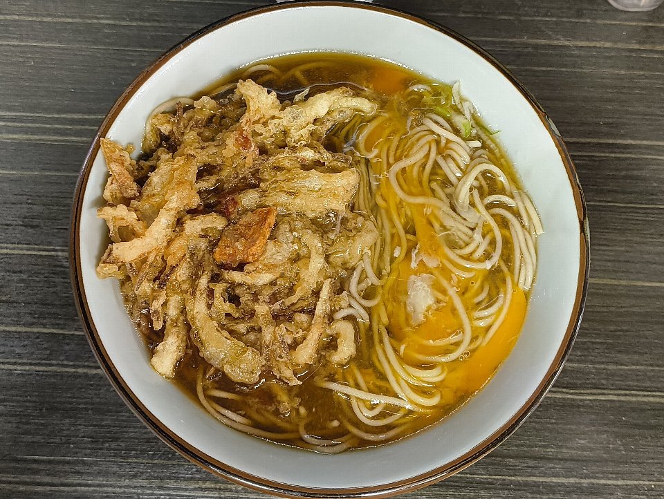 仕上げは、ばらばらになりかけた、あのかき揚げだ。汁を吸いきって「ふにゃふにゃ」になったあの食感を楽しむ。