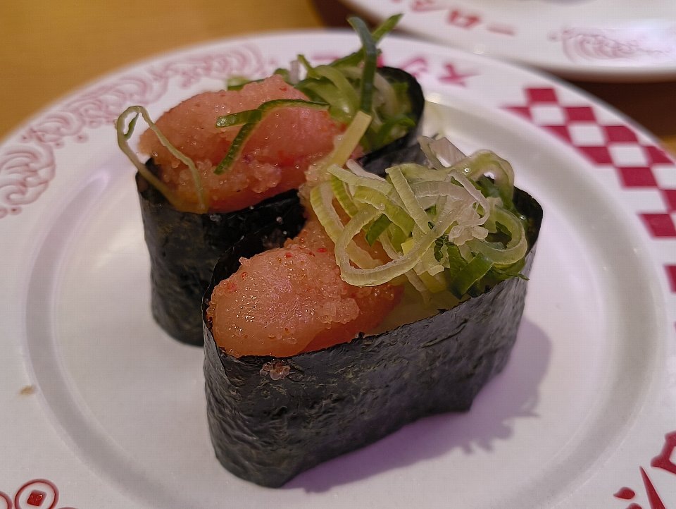 魚卵フェチのあたしにとって、寿司屋で魚卵と云えば「いくら」が定番だが、今日は「明太子」の気分。「明太子が食えるぞ!」と、心の中で一人小躍りしたのだ。