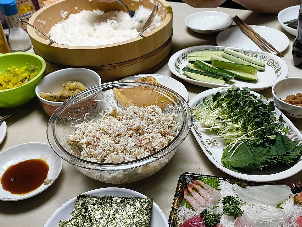 夕方になり、息子もマンションからやってきて酢飯作りを手伝ってくれた。