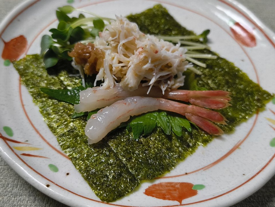 年に一度。毎年この時期に家族で囲む「オホーツクの毛蟹の手巻き寿司」、家族揃って幸せにいただいたのだよ(笑)。
