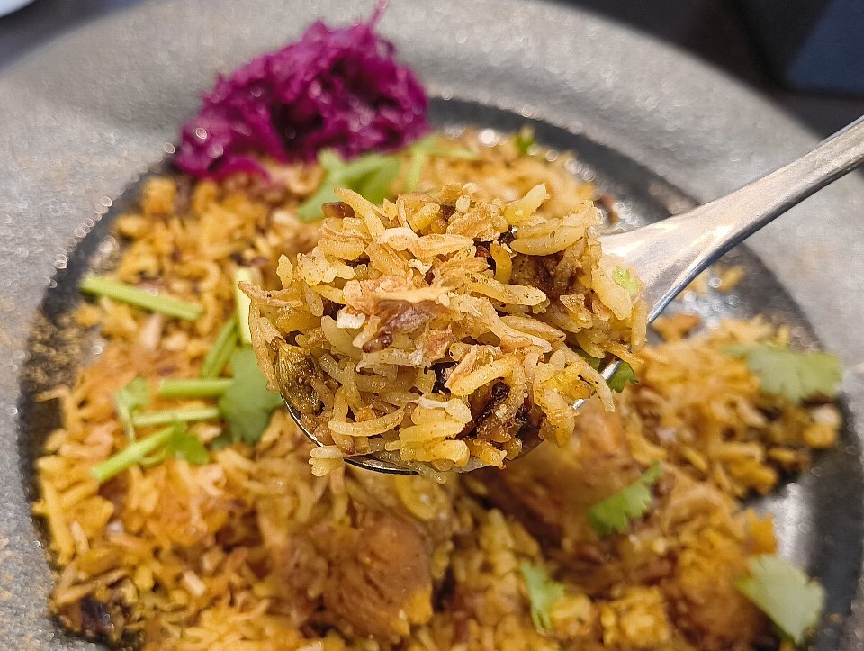 細長い「バスマティライス」だけでなく、日本米もハイブリッドされているようで、パラリとした軽やかさの中に、どこか親しみのあるもっちり感も同居している。